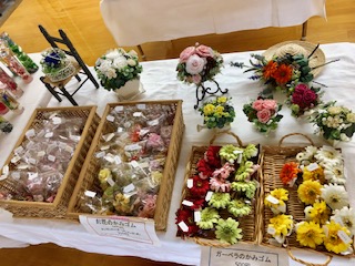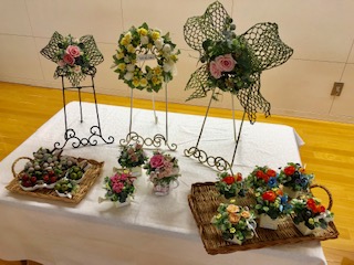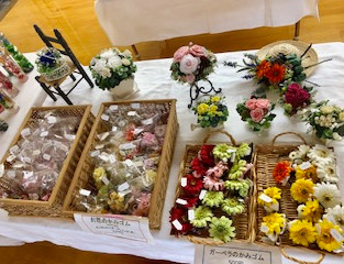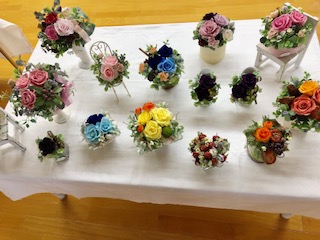 2005年から出店をさせていただいている、ご近所の愛和たいよう幼稚園の出店の依頼があり今年も出店してきました。園舎の移転前からかれこれ15年目。作品の販売に力を注ぐというより、会場がホールのステージになってからは、行列をしないと入れないバザー会場と同じ場所なので一般の皆さんより先にお買い物が出来、掘り出し物を探すのを楽しんでおります。大きい作品は最近は運ぶのも大変なので小物を中心に・・今年大学生になった息子がレジ係を担当してくれて助かりました♪ 「毎年こちらで購入していて飾ってるのよ」と、今年はピンクの薔薇のコーヒーカップアレンジをご購入して下さったご婦人に、古くなったり劣化したものはリメイク出来ますよ!とお教室の案内をお渡ししました。